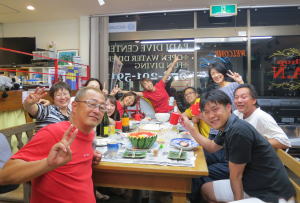 予定通りダイビングを終えられて、打ち上げ中〜\(^o^)/