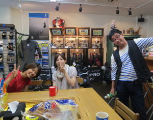 お仕事帰りのIさんは、昨日の柏島ツアーの器材をお持帰りです。
