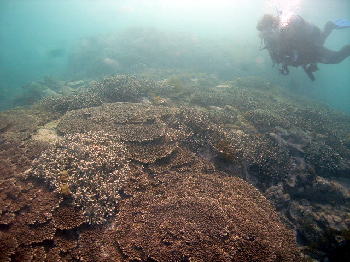 | サンゴの上をのんびりと。 ドンドンとサンゴが増えて来ています! 中性浮力をしっかりとって サンゴを折らないように楽しみましょう! サンゴ周辺にはお魚もたくさん住んでいます。 |