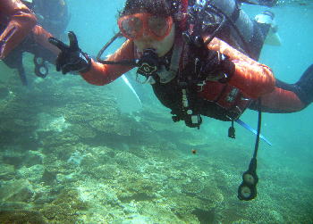 | 今日はIさんのお誕生日でした! 水中でお祝いの記念撮影〜 ダイバーとしても、今日がお誕生日です。 おめでとうございます! |