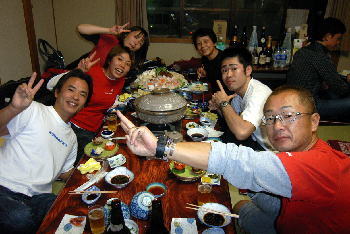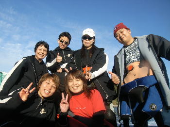 | チームピンク! ダイビング満喫してのクエ鍋突入! 地元の方から 三重・千葉より ご参加いただきました! |