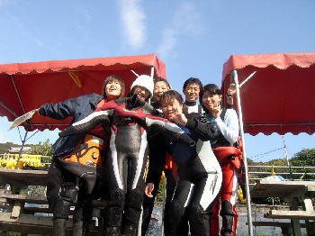 | 忘年会ツアーへ行って来ました! 毎年恒例ツアーですが、今年の土曜日は串本でダイビング! みなさんベテランさん揃いでしたので、1本目は早めに出港準備をして外洋にGO! 少し流れが入っていましたが、頑張ってドロップオフへ! 水深28Mには、赤のチェックが可愛らしいクダゴンベ! さらに根の上に戻ってくると、上空にはマダラトビエイ! 2本目の住崎では、エントリーするなりカゴカキダイやアマミスズメダイ、アカヒメジが い〜っぱいでお出迎えしてくれました! 1本目に頑張ったから、2本目はまったりとしよ。ということで根の周りで楽しんでいると、 カエルアンコウいたよ〜の情報が!行かなくては〜とやっぱり泳いで、プリティーカエルアンコウに 癒されてきました〜! 串本で温泉に浸かり、ちょっと仮眠が取れたところで、白浜へ!到着すると少しして土曜日合流組が到着! 宴会が始まりました! 民宿まるきさんのクエ鍋は、毎年最高です!タップリと脂の乗った天然クエがいっぱい! 22時過ぎにはもう一組のゲストが到着。夜中12時頃からKさん&Nさんのお誕生日お祝いや スタッフの出し物やゲストの歌&踊りなどもあり、全員でおどりまくりましたよ。 それ以降は、まったりと飲み明かし、明け方4時ごろまで宴会は続きました。 朝8時。さっき寝たトコやん!といいつつも、美味しい朝食を頂き、白浜観光へ! 千畳敷や、三段壁、白浜とれとれ市場を満喫して 夜17時には、お店に帰ってきました〜(^-^) ご参加いただきました皆様、ありがとうございました! 今年都合が付かなかった、と言う皆様も、来年は是非おこし下さいね。 来年も、よろしくお願いいたします! |