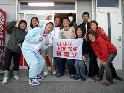 が、潜り納めをしなくてはということで、冬の古座川へ! 水温9度でしたが、しっかり着こんでエントリーしたので、寒さは全く感じませんでしたよ。 恐ろしく大きな、白とオレンジのコイが目の前に現れました〜ワオ そして、迎えた新年。 水中カウントダウンは出来ませんでしたが、陸上で宴会〜♪ 早朝から初日の出もしっかり拝みましたよ。 1日は餅つき大会! 臼と杵を使っての餅つきは、なかなか経験できるものではありませんよね。 皆さん、楽しそうについていらっしゃいました。 ようやく1月2日。串本へエントリー! 待ち焦がれた海は、とても青く、キビナゴやツムブリの群れ、 話題のボロカサゴや、青と赤のフリソデエビのペア。 ミナミハコフグの幼魚もまだ元気に泳いでいました〜! |
