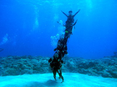 | Kくんの「もしかしてさよならBIGツアー?」ということで 全員で記念撮影でーす(^_^)v ○○しても、潜りに行きましょうね〜っ!! |
