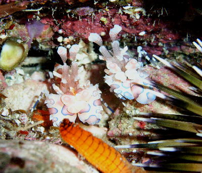 フリソデエビは仲良く2匹並んで、 ヒトデを食べていました! |