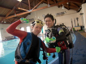 | プール後。 余裕のポーズです! さあ、海へ繰り出しましょう〜 |