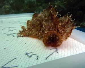 | このシーズンならではのメリベウミウシです! 前の丸い部分が口ですよ。 ココをむにょーんと広げて、お食事をします! その形は、まるで便所スッポン! |