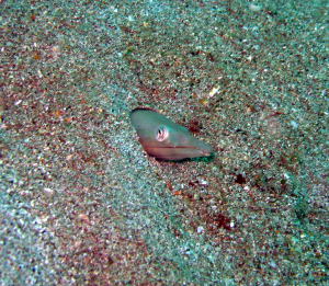 | 砂地では、ダイナンウミヘビが ジッとこちらを見つめていました。 |