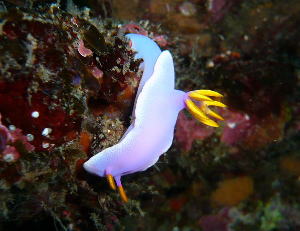 ![]() ![]() イスズミ礁では、まるで「ウミウシ銀座」のように 数多くの美しいウミウシの姿が見られました! 左は、シンデレラウミウシ 右は、ボブサンウミウシでーす♪ |