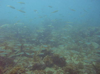 | アジや、アイゴ、ニザダイ、スズメダイなど 群れ群れに大興奮のシャクシの浜でした! 期間限定ポイントです! 水深を取ると、とっても穏かでした! |