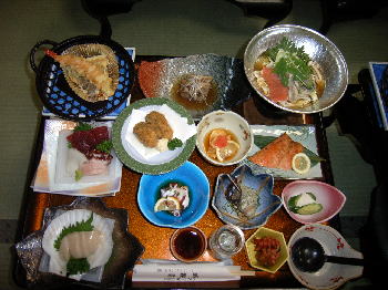 | もちろんお宿のお食事は、海鮮中心のご馳走で〜す! ビールを飲んでる暇がありませんでした(^O^)♪ おいしかったぁ〜 |
