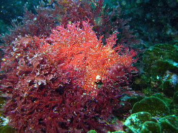 ツアーご参加のHさん、カメラを新調しての第1作です! 今回の大ヒット ボロカサゴです! 赤い海藻に寄り添うようにしています。 さて、どこからどこまでがお魚か 分かりますか??? |