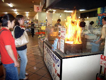 | ツアー帰りの途中には 目の前でカツオのたたきを 作ってくれる道の駅。 藁がわあ〜っと燃え上がり いい感じにカツオが仕上がってきます! ウマイッ! |