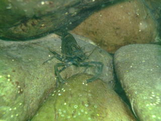 | 岩の隙間にたっくさんいたテナガエビ! すばしっこくて、どんどん逃げていきましたね♪ なかなか美味しいらしいですよ〜(o^_^o) 食べてみたいものです… |