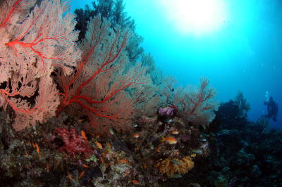 綺麗なイソバナの群生に 太陽の光が差し込んで これまた癒しの光景! 一年分の疲れや嫌なことも座間味の海が消し去ってくれます! |