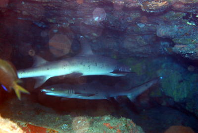 | 穴の中にいたネムリブカ 2匹 子ぶりながらも 目つきはやっぱりドキっとしますね(>_<) |