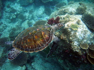 なんと柏島でウミガメさんに出会ってしまいました! 小柄な可愛いカメちゃんでした(^о^) |