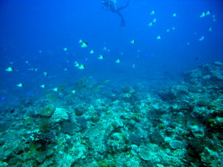 カスミチョウチョウウオの群れは いつどこで出会っても 癒し系ですね〜(*⌒▽⌒) |