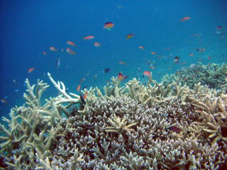 どこもかしこも元気いっぱいのサンゴが群生しています! その上に群れるアカネハナゴイの群れが キレイでした〜ヾ(^▽^)ノ |