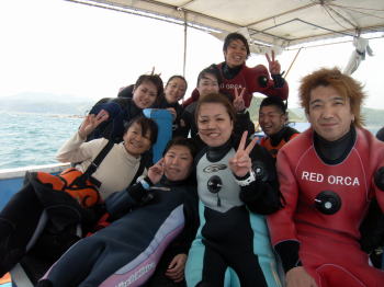 | GWは、ホームグラウンドの串本へ行ってきました! お天気も、快晴が続き、海も穏やかで、のんびり&たっぷりと串本の水中を満喫してきましたよp(^-^)q 2日は、普段あまり行っていなかったサンビラでのんびりしたり、 グラスワールドの産卵床では、6匹のアオリイカが産卵にやってきて、目の前で産卵を見ることができました! 3日は、参加される方が全員集合!!STAFF含めて総勢20名を超え、さらに賑やかになりました! まずはアオリイカの産卵床チェック、そしてカエルアンコウ祭りで、クマドリやイロ、オオモンなど、 各種カエルアンコウをチェック!! 備前では、アザハタの根や、ボロカサゴ探し♪ 3ダイブ目には、T林M子様の500本記念もあり、全員で記念撮影&胴上げで、盛り上がりました♪ 500本を迎えられたMさん、本当におめでとうございます! これからも潜り続けてくださいね〜!! 4日は、イスズミ礁で、ウミウシダイブ!目的のシモフリカメサンは発見できませんでしたが、ムラサキウミコチョウや、ニシキウミウシ、キイロイボウミウシや、ゾウゲイロウミウシなど、色んなウミウシに出会えました!昨年から居ついていたモンガラカワハギも、徐々に大きくなって、越冬してくれたみたいですよ〜♪♪ グラスワールドでは、アオウミガメ&シコロサンゴの群生に癒され、キビナゴの大群にも囲まれました! 備前では、全員で再びボロカサゴ探しp(^-^)q めちゃくちゃ探しましたが、残念ながら、見つからず…でも、可愛いイロカエルアンコウの赤ちゃんや、この日新発見の黒いクマドリカエルアンコウにも出会えました!! ツアー最終日の5日は、S本R子様のお誕生日、日が変わる前に少しフライングのバースデー祝いも開催! そして、海へ潜ると…透明度もググッとアップし、20m以上見えていました〜!! 青い海の中を泳ぎまわってきました! 水温も22度まであがっていたので、エントリーした瞬間から、「あったかーい〜」と感じましたよ(^-^) 備前では、ヤシャハゼも全然ひっっこまずに写真を撮ることもできたり、 グラスワールドでは、アオリイカの産卵は見られませんでしたが、 相変わらず定位置にいてくれるカエルアンコウ祭り! 最後の最後には、キビナゴがどこからともなく沸いてきて、プカプカしているだけで、癒される水中でした! 毎日潜りまくり、温泉でほっこりした後は、お鍋やBBQを食べまくり、夜には宴会でお酒を飲みつつ談笑したり… とにかく賑やかに、そしてあっというまの4泊5日でしたヾ(^▽^)ノ ご参加いただきました皆様、有難うございました! |