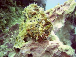 | しばらく姿をくらましていたイロカエルアンコウさんが スリバチカイメンの上にドーンと乗って復活宣言です!! 一体いつもどこにお出かけしているんでしょうか??? |