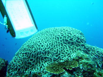| ファンダイビングでご参加の、Uさんのお写真です! 久しぶりに手にしたカメラで、がんばっちゃいました! イスズミ礁にある、オオハナガタサンゴ! とても大きくて立派ですよ。 透明度も良かったですね。 |