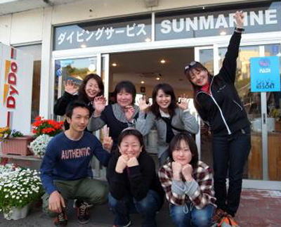 | 1ツアーで白浜もみなべも味わえて、一度で二度おいしい白浜みなべのツアーに行ってきました! 着いてみると、予想を超える素敵な海とお天気が待っていてくれて、ツアーが終わるころには、顔がこんがり・・・。 夏が近づいてきた感じがしましたよ〜ヾ(^▽^)ノ 初日はレディースで白浜へ!! 到着前は風が吹いている予報・・・でも、沈船に潜るべく白浜へ向かいます! 出港していく船は大きく波に揺られているように見えましたが、実際乗り込んでみるとへっちゃらな感じ♪ そして、沈船ポイントに到着〜〜♪ しかもエントリーしてビックリ!!あの大きな沈船が丸見えなんです〜ヾ(^▽^)ノ丸見えの沈船に大興奮で、さっそくやってしまいました・・・『タイタニックごっこ』。陸上では皆さんちょっと照れくさそうですが、水中に入ると恥ずかしさも吹き飛ぶのか、どうぞ〜と手招きすると、順番に船首へ♪ばっちり記念撮影して、お次は船内へ!大きなウツボがくつろいでいたり、沈船の周りにはいろんな種類のお魚たちが集まってきていましたよ〜 2本目は『マッチ』というポイントに!芸能人の近藤真彦さんにちなんでつけられた名前だそうで、興味津々で入ってみると、壁にはウミウシがたくさんついているし、大きく穴が開いたアーチにはハタンポがぎっしり☆☆向こう側からは光が差してきて、白浜にいながら沖縄気分まで味わえてしまいましたo(^o^)o ダイビングの後は温泉に入って、おいしい民宿のご飯をいただいて、 夕食の後はレディースツアーでしか話せないレディーストークが飛び交いましたよ! そして、2日目はみなべへ移動!! 起きた瞬間から最高のお天気で、テンションも上がる上がる♪そして、海も穏やか! 1本目は超有名ポイント『ショウガセ』へ!目指すはオオカワリギンチャク!! ドロップオフの方へ泳いでいくと、見えました〜!!黄色い絨毯♪水底がネオンイエローに輝いていましたo(^o^)oあまりの美しさに40メートルの水底に吸い込まれてしまいそうでしたが、いかんいかん!と自分に言い聞かせながら、上からじっくり黄色の絨毯によいしれました☆その後も、いろんな生物たちが現れて大忙しの1本でした(*^_^*) 2本目・3本目もイサキの群れが通り過ぎて『おぉ〜!!』って興奮してみたり、キンギョハナダイの乱舞に『癒されるな〜』とほのぼのしたり、大きなアーチをくぐって冒険気分を味わってみたり、ドンドン湧き出てくるウミウシに吹き出してしまったり・・・o(^o^)o盛りだくさんのダイビングになりましたよ♪ ご参加いただいた皆様、ありがとうございました!! |