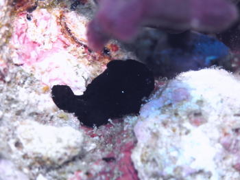 | 黒くてちっちゃな、イロカエルアンコウちゃん。 これまた小さすぎて、何がなんだか分からない?! 指の先ほどのサイズしかありませんでした! |