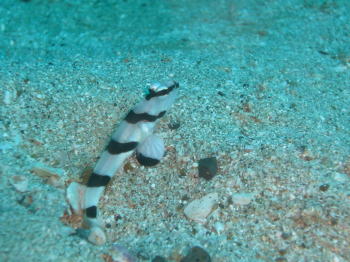 | 柏島と言えば!のマクロコーナー(*^_^*) 目のところにキリッとラインが入った、キツネメネジリンボウです。 この子と出会いたい方は、真夏の柏島へ! |