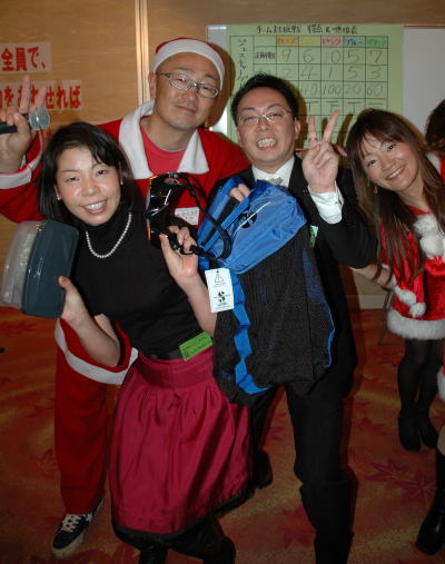 ![]() 2010年クリスマスパーティーも大盛り上がり!! 笑って・遊んで・食べて・飲んで〜〜 気がついたら、あっという間に3時間が経っていましたね♪♪ ご参加いただきました皆様、ありがとうございました!! 来年のクリスマスパーティーも、更にパワーアップしていきますので 宜しくお願いいたしますヽ(´ー`)ノ |