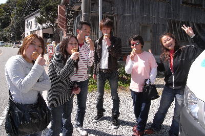 | 津波警報が発令して、泣く泣く1本で終了した皆さん、 ダイビングがダメなら美味しいものでも♪と ソフトクリームを食べてご満悦のご様子です(o^_^o) 今の限定味はイチゴ味でした〜 |