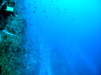 | 与那国と言えば、ハンマーヘッドのこの季節。 でもね。 他にもいっぱいお魚はいるんですよ〜 ドロップオフはとても魚影が濃かったです! |