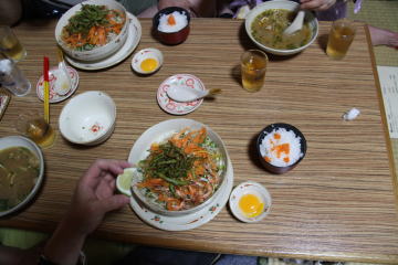 | お昼ごはんは、オススメのオソバやさんへ。 久米島は、おみそを使ったソバもあるんですね〜♪ いつもとは少し違ったおそばを堪能しました! ![]() |