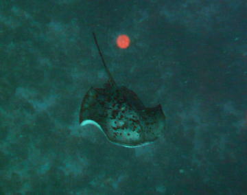 | そして、こちらも大きなマダラエイ♪ 1匹は泳ぎ去り、 もう1匹はのーんびりと横たわっていましたね! |