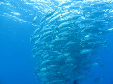 そしてもちろん、このお方もやってきました! グルクンの群れに突っ込むイソマグロの姿は なんてかっこいいのでしょう(*^_^*) いつ見ても惚れ惚れしちゃいます! |