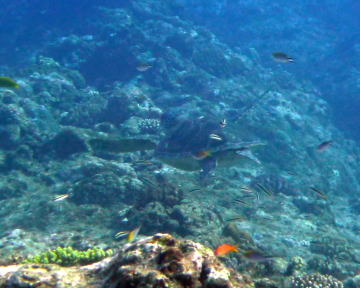 | 泊まっていたホテルからは、 イーフビーチがすぐだったので、 元気な皆様は、アフターダイブになんとシュノーケリングを! 青空がきれいで、とっても気持ちのいいお天気♪ ![]() |