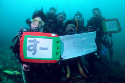 ラストは、海の日ツアー3日間で11本潜り倒したSさんの 200本記念!! 今回のツアーの勢いでどんどん潜って 素敵な写真もどんどん撮っていってくださいね〜♪ |