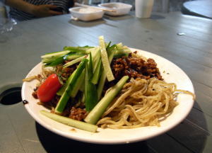 BBQ!鉄板の貴公子作新メニュー☆ その名も『ホット冷麺』!! 熱いの?冷たいの?どっち〜〜 本当はジャージャー麺だそうですよ♪ 2日目もリクエストの入った人気メニュー 皆さんもお試しあれ♪ 下のオムレツも今回初目メニューです(^-^)v |