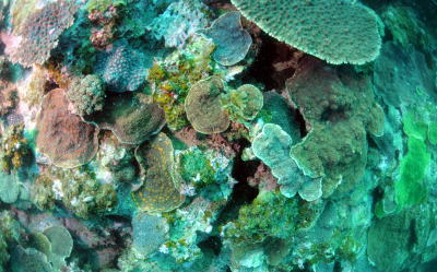 最終日の早朝ダイビングはイスズミ礁のスプリングコース! スプリングコースは数え切れないくらいいろんな種類のサンゴで 埋め尽くされています♪♪ 写真に写っているだけで、一体何種類あるのでしょうか〜? |