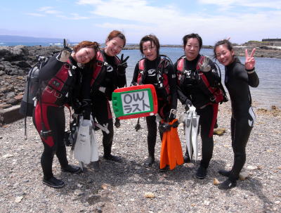 そして、ラストダイブ! スレートに書いた『OW』の文字を見て 『OWってなんですか?』という ビックリ発言まで・・・(*^_^*) 皆さん、OW講習お疲れ様でした! そして、おめでとうございます♪♪ |