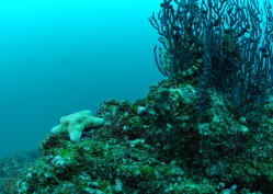 根の上で カワテブクロというちょっと変わったヒトデを発見!! 見つけて嬉しかったんですが、 ぽつんと根の上にいて、哀愁漂う感じ・・・?! |