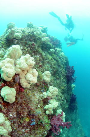 | ブロッコリーがいっぱい!!! ではなく、 ソフトコーラルがたくさんついていて お花畑の横をお散歩しているみたいですね〜♪ 近くを通るとちょっと乙女チックな気分になりますよ! |