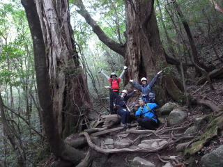 ![]() これは最後に撮影した一枚♪ 今回、縄文杉を案内してくださった中村さんと一緒に 記念撮影ですヾ(^▽^)ノ 本当に1日、お疲れ様でした〜! すがすがしい皆さんの笑顔でーす(o^_^o) |