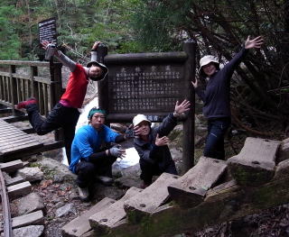 そして、荒川登山口にいよいよ到着でーす!! 達成感いっぱいで皆でピースサインv (^-^)v また来年もぜひこの素晴らしい大自然を 満喫しにきましょうね〜ヾ(^▽^)ノ |
