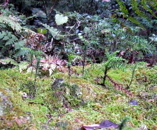 こちらはコケの上で これから成長していこうとする 杉の赤ちゃんです(o^_^o) 栄養いっぱいのコケの上で これから千年かけて屋久杉に育っていくんですね〜! |