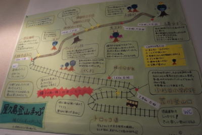 ![]() ホテルに貼ってあった縄文杉登山まっぷ なんとそこには「地獄1丁目、2丁目、3丁目」の文字や、 「落ちたら命はない」、など おっそろしいことが書いてあります(>_<) さぁ、大丈夫なのかな〜、と不安を抱えてしゅっぱーつ! |