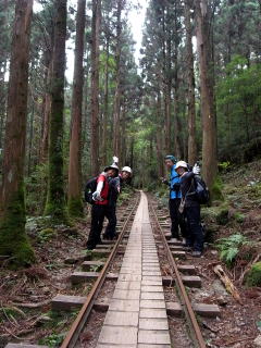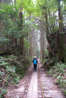 | そして、ここからはトロッコ道♪ 延々と続く8.5kmの道のりも 縄文杉に出会ってきた興奮と感動で 力強く?歩くことができたかなぁ〜 |