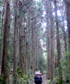 | 帰りのトロッコ道です。 太陽に向かってまっすぐに伸びた杉林の中を テクテク歩いて帰ります! |