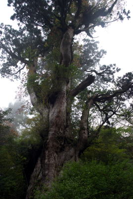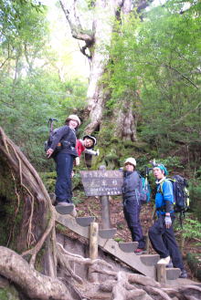 | さて、ここからはNさん撮影の写真です! 一眼レフを首からさげて 登山ボーイファッションに身を包み 万全の体制で臨んだ縄文杉トレッキングの始まり、始まり〜 ちなみにこの写真は三代杉と言いまして、 |