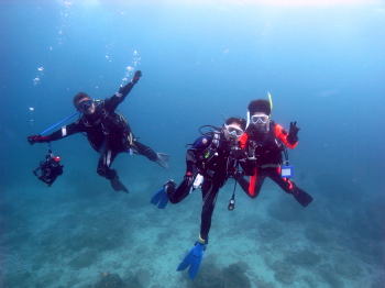 ラストの5本目を潜り終え 5mで3分の安全停止。 もう終わっちゃう〜早すぎる〜〜〜 という皆様です。 |